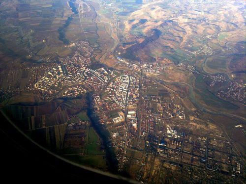 Onești – imagine din avion, autor necunoscut (imagine sugerată de către George-Cosmin Păunescu)Onești – Imagine satelitară Landsat 7 ETM+(iunie 2002) realizată prin combinarea benzilor spectrale 3,2 și 1 (imagine sugerată de către George-Cosmin Păunescu)